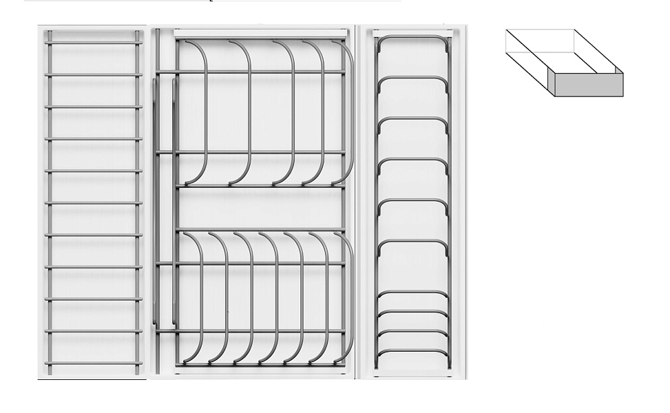 • 1 большой модуль для посуды + 1 большой модуль с решеткой + 1 малый модуль для посуды