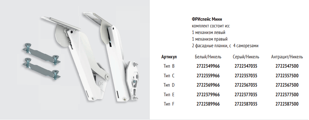 Подъемник ФриСпейс, тип E, Комплект из 2 шт (правый и левый) и 2 крепления к фасаду, цвет СЕРЫЙ/никель (2722377035)