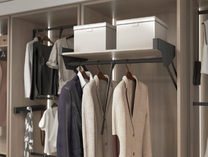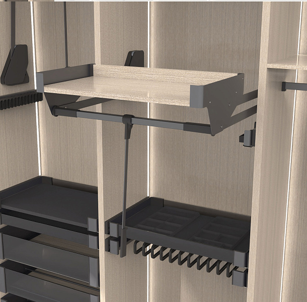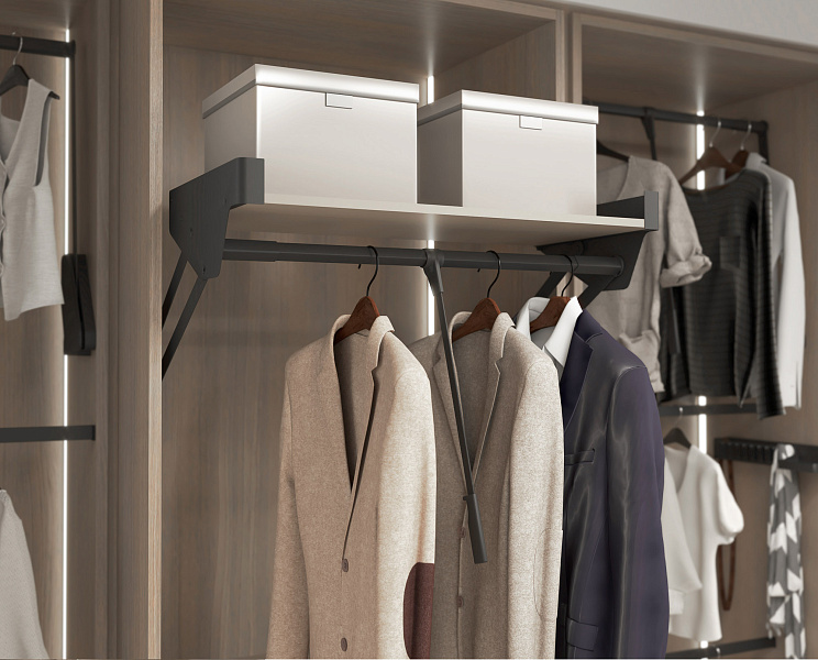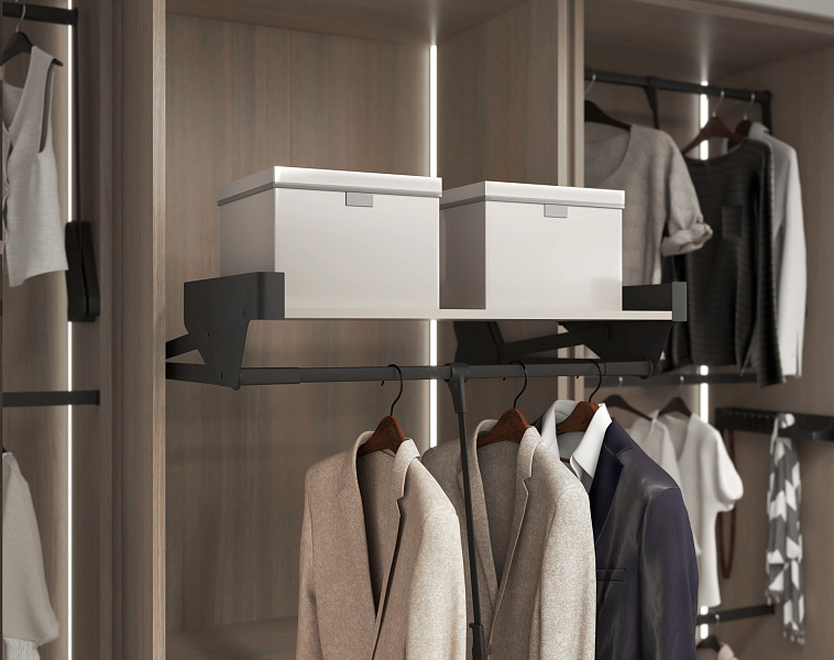 Пантограф с полкой в гардеробную Конеро W 445-628 мм цвет ЧЕРНЫЙ Kessebohmer | официальный магазин